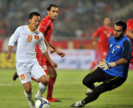 Mặc dù phải hứng chịu nhiều áp lực trên sân khách, ĐT Việt Nam vẫn là những người chủ động và mạnh bạo hơn trong các tình huống tấn công. Cả 4 “vệ tinh” làm nhiệm vụ hỗ trợ cho Việt Thắng là Công Vinh, Thanh Hưng, Thành Lương, Trọng Hoàng đều hoạt động không biết mệt mỏi và cố gắng tận dụng từng kẽ hở tổ chức tấn công.