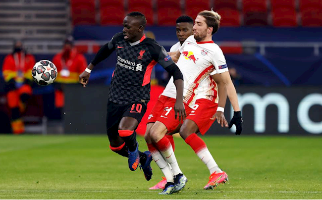 Chỉ 5 phút sau sai lầm của Sabitzer, tới lượt hậu vệ Mukiele mắc lỗi giúp đội khách có bàn thắng thứ 2. Một cầu thủ Liverpool đưa bóng từ bên phần sân nhà lên phía trên, Mukiele phá bóng hụt tạo cơ hội cho Mane đối mặt với Gulacsi. Cú dứt điểm quyết đoán của cầu thủ người Senegal không cho thủ thành của Leipzig một cơ hội cản phá nào. 45 phút đầu tiên, hàng thủ đội bóng nước Đức đã đứng vững. Nhưng chỉ trong 5 phút đầu hiệp 2 họ liên tiếp mắc lỗi và phải nhận 2 bàn thua.
